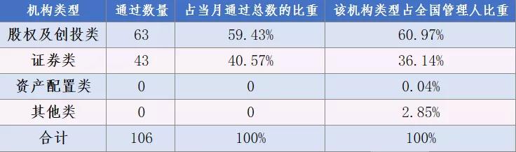 上圖為2021年10月通過(guò)的各類型私募基金管理人數(shù)量及占比詳情。對(duì)比2021年9月份(通過(guò)股權(quán)及創(chuàng)投類108家,證券類86家),新登記通過(guò)的股權(quán)和創(chuàng)投類私募基金管理人和證券類私募基金管理人有所下降。