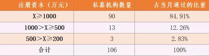 上圖為2021年10月登記的私募基金管理人注冊(cè)資本分布圖,注冊(cè)資本大于1000萬(wàn)的私募基金管理人有90家,占當(dāng)月通過(guò)比重約為84.91%,可見(jiàn)注冊(cè)資本超過(guò)1000萬(wàn)元的私募基金管理人更容易通過(guò)登記。